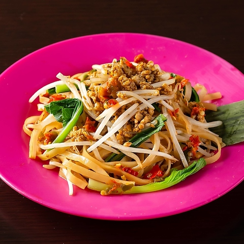 酔っ払いも目覚める刺激!香ばしく炒めた自家製米粉麺に唐辛子とバジルが香る辛口焼き麺。