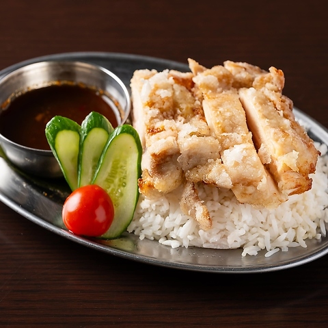カリッと揚げたジューシー鶏と香り米。特製タレが決め手のタイ風ごちそうご飯。