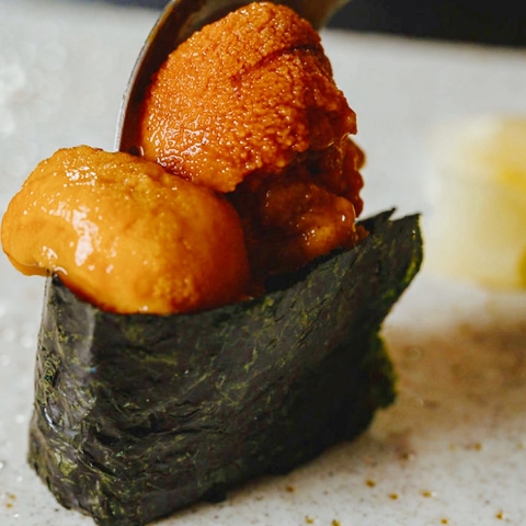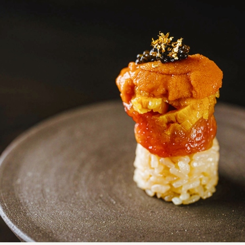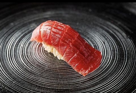 鮨四では、旬の食材がもつ色・質感・艶までも繊細に活かし、まるで一枚の絵のような美しいひと皿へと仕立てます。職人の手仕事によって、一貫ごとに計算された美しいフォルムと配置が生まれ、目にした瞬間から心を奪われる鮨体験に。器や盛り付けにもこだわり、特別な時間に相応しい”美味しさと美しさ”の両立を追求しています。
