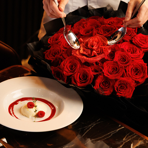 お食事の最後を締めくくるのは、パティシエ特製のデザートです。独創性に溢れ、まるで宝石のように華やかな見た目のデザートたちは、女子会や記念日、デートなどをさらに盛り上げてくれること間違いなし。もちろん味も本格派で、思わず笑みがこぼれる美味しさです。甘美なデザートと共に、思い出に残る素敵な時間をお過ごしください。