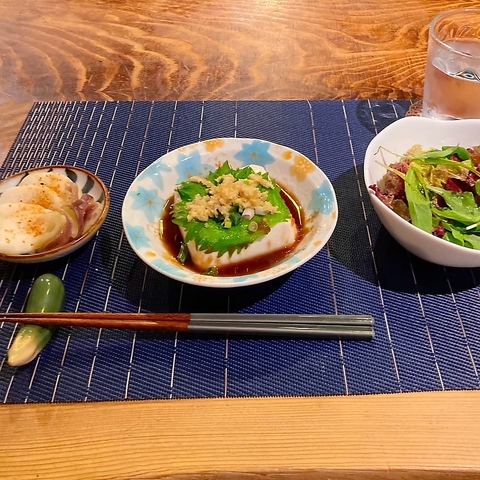 素材の組み合わせにこだわった一品料理を提供する当店。店主の独自の感性で、誰もが思いもよらない新しい味わいを創り出します。心を込めた料理で、特別なひとときをお楽しみください。