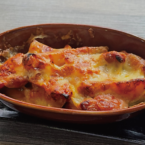 スペイン発祥の豚肉ソーセージ(チョリソー)と、濃厚なチーズを組み合わせて焼いた、おつまみに最適な料理。激辛です