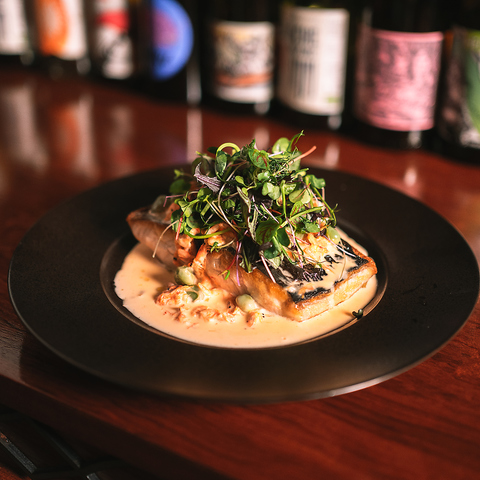 前菜の定番◎「ポートレートプレート」は、お酒との相性を考えた5種の盛り合わせ♪自家製の大人なポテトサラダや、セミドライトマト、タコとセロリのマリネ、パリパリピーマン、いぶりがっこチーズなど、多彩な味わいを一皿で楽しめます。また、香り豊かな鴨レバーのムースは、バケットに塗ってワインとともに味わうのがおすすめです。
