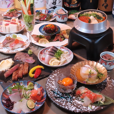 旬の食材をふんだんに使った、目でも舌でも楽しめる料理の数々をご提供します。当店のこだわりが詰まった料理の数々で、大切な人との時間をお過ごしください。特に、絶品博多もつ鍋は、独自のこだわり抜いた秘伝のスープが◎和牛いくら寿司は、見た目にも美しく、食欲をそそります。