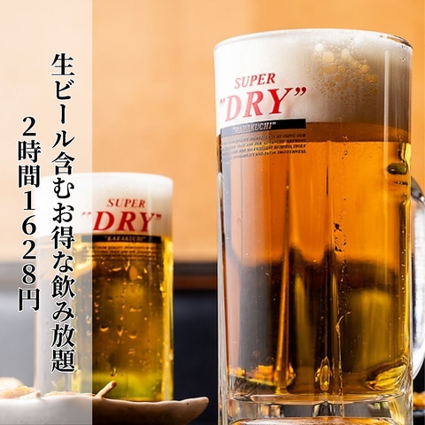 2時間飲み放題1280円~!各種宴会に最適なコースも充実。定番のビールやサワーはもちろん、こだわりの日本酒や焼酎、カクテルも豊富に取り揃えております。お料理も自慢の逸品揃い。賑やかな空間で、楽しいひとときをお過ごしください!