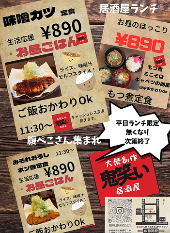 | 店名 | 大衆創作居酒屋鬼笑い |