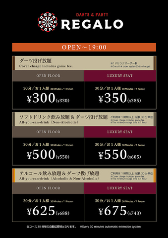 REGALO上野駅前店ではダーツバーでお楽しみ頂ける食後にピッタリなデザートもございます!ご希望のお客様にはメッセージ付ホールケーキや花束もご用意致します!貸切やパーティーなどで皆様の素敵な記念日のお手伝いをいたします♪ご予算で選べるコースも◎各種ご宴会はお気軽に店舗までご相談ください!