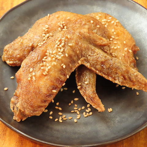 外は香ばしくカリッと、中はふっくらジューシー。特製ダレがじんわり染み込んだ手羽先は、一口かじれば旨みがあふれ出す“止まらない美味しさ”。仕上げのごまが香りのアクセントとなり、お酒との相性も抜群!ビール片手に思わずもう一本…と手が伸びる、当店自慢の名物手羽先です。