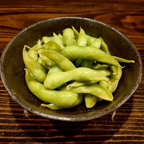 ■枝豆 ふっくら茹で上げた豆の濃厚な甘みと香り。絶妙な塩加減が後を引く、ビールのお供に欠かせない不動の定番。 Plump, perfectly boiled soybeans bursting with natural sweetness. Lightly salted, this classic appetizer is the ultimate partner for cold beer.
