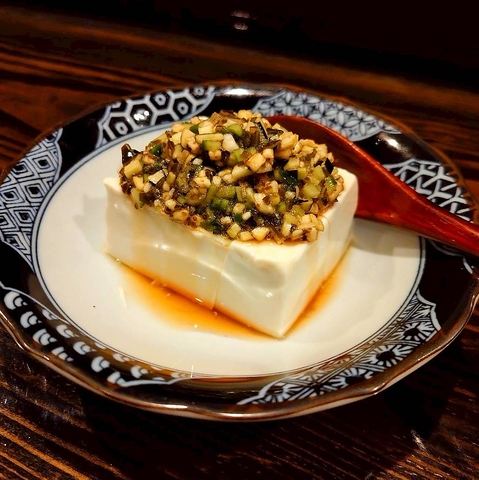 刻んだ香味野菜達が奏でる、シャキシャキの食感。つるりとした豆腐と絡み合う、山形が誇る郷土の味。 Cold tofu topped with "Dashi," a Yamagata specialty of finely chopped summer vegetables and herbs. A refreshing dish with a delightful crunchy texture.
