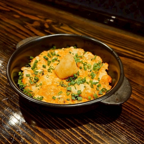 ヤゲン軟骨の力強い歯ごたえと、梅の爽やかな酸味が絶妙に絡む。心地よいコリコリ食感が癖になる、至高のつまみ。 Crunchy chicken cartilage tossed with sour plum paste. The unique crisp texture and zesty flavor create an addictive pairing for any drink.