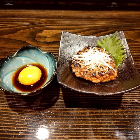 合鴨ならではの深いコクと溢れる肉汁。濃厚な卵黄をとろりと絡めて頬張る、至福の味わい。 Succulent minced duck meatballs served with a fresh egg yolk dip. Coat the savory meat in the creamy yolk for a rich, luxurious bite.