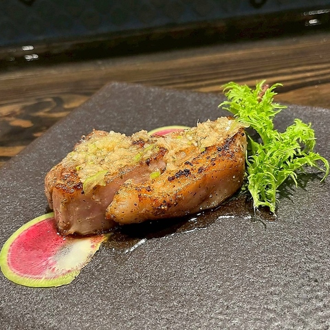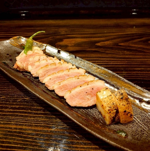 しっとりときめ細やかな肉質と、噛むほどに滲み出る濃厚な旨味。皮目はパリッと香ばしく、中はジューシーに焼き上げた、合鴨の魅力を存分に味わえる一皿。 Fine-textured, tender duck meat that releases rich savory flavors with every bite. Grilled to perfection with crispy skin and juicy meat, allowing you to fully enjoy the exquisite taste of duck.