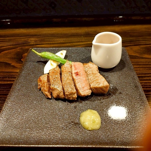 きめ細やかな肉質と、噛むほどに広がる赤身の濃厚な旨味。山形牛ならではの上質な脂の甘みを、シンプルにステーキで味わう贅沢。 Premium Yamagata Beef round steak. Enjoy the fine texture and the deep, savory umami of high-quality lean meat. A luxurious dish highlighting the natural sweetness of the beef fat.