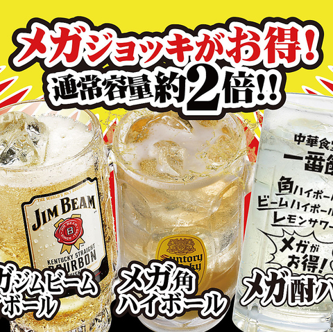 メガサイズのドリンクが何と350円!昼飲みや、ちょい飲み、〆としてもお気軽にご利用ください♪