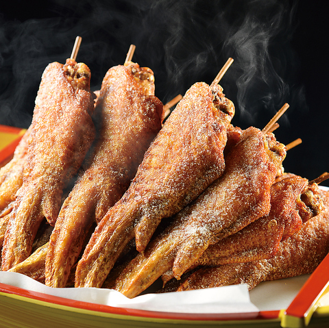 秘伝のダシに漬け込み、熟練の技で素揚げし、秘伝のオリジナルパウダーをふりかける。ジューシーながらもやみつきになるスパイスで何本でも食べれます!クセになること間違いなしのふく手羽で今夜はいかがでしょうか。