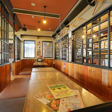 昭和レトロをコンセプトにした広々とした店内は、大型宴会にも快適な環境を提供します!テーブル配置は柔軟で、ロールカーテンを使用した半個室の工夫もあり、団体利用時にプライバシーも確保。温かみのある照明と懐かしさを感じるインテリアで、にぎやかさと心地よさを両立した店内です。