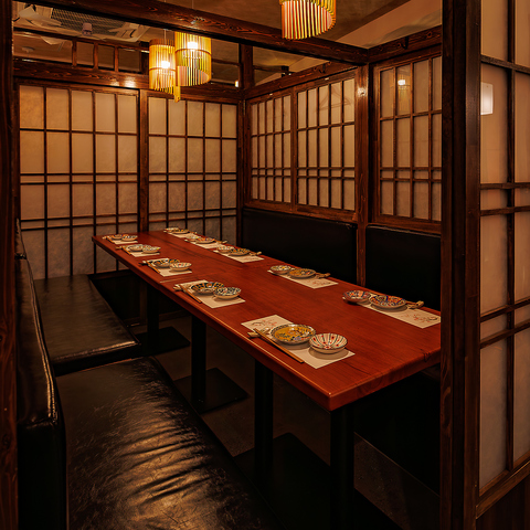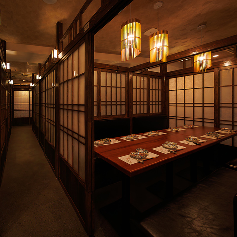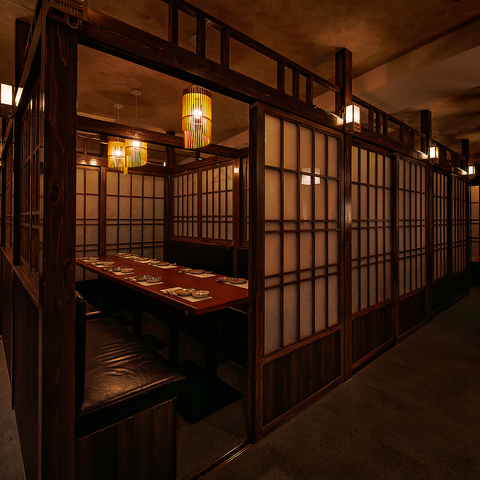 大中小個室完備でさまざまなシーンに対応可能!都会の喧騒を忘れさせてくれる情緒漂う和個室空間。日頃の疲れを癒してくれます。