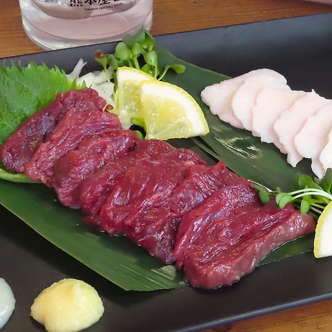 熊本の郷土料理といえば、やはり「馬刺し」は外せません!当店では鮮度抜群の美味しい馬刺しをご用意しております◎口の中に入れた瞬間にとろけるような柔らかな食感と、新鮮な馬肉ならではの豊かな旨みが口いっぱいに広がります♪地酒や焼酎と一緒にお召し上がりいただくと、より一層美味しくお楽しみいただけます!