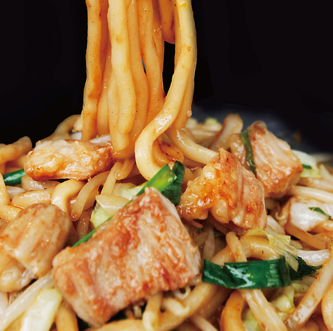 ぷりぷりのホルモンがたまらない「ホルモンうどん」は1160円(税込)◎にんにくの有無も選べるので、スタミナ満点の宴会に最適!