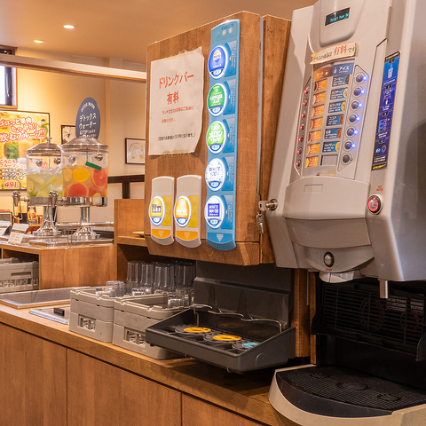 店内に設置されたフルーツたっぷりのデトックスウォーターは、どなたでも無料で自由にお飲みいただける大人気のサービスです!また、種類豊富なドリンクバーも完備しており、平日限定のサービスランチをご注文の方は無料でご利用いただける嬉しい特典も。熱々の鉄板料理と一緒に、お好みの飲み物で喉を潤してください♪