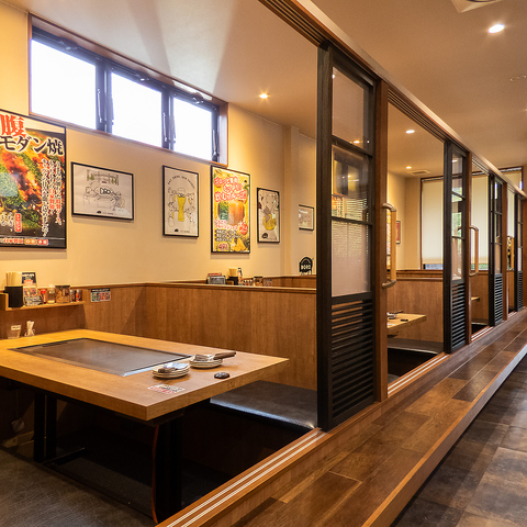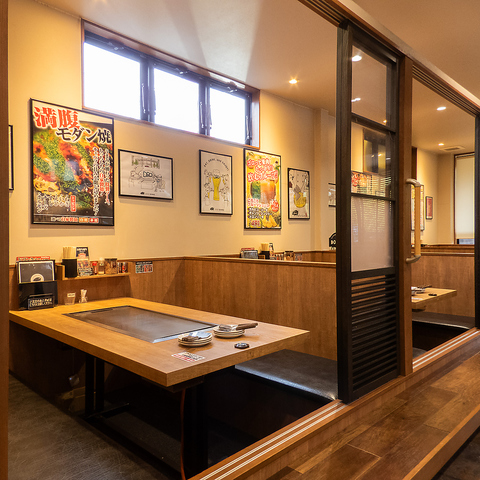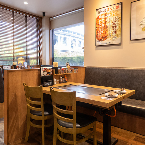 各テーブルには専用の鉄板が設置されており、目の前で料理が熱々に保たれるライブ感を楽しめます◎4名~6名様用のゆったりとしたBOX席は、ご家族や親しい友人との団らんに最適。また、2名様用のコンパクトなテーブル席もご用意しておりますので、デートや少人数のサク飲みにも対応しております!