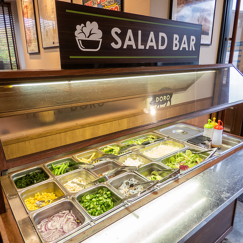 当店では、お好みの鉄板料理に合わせて楽しめる新鮮なサラダバーをご用意しております! 色とりどりの野菜を心ゆくまで堪能できるため、健康を気遣う方や女性のお客様にも大変喜ばれています。 平日のランチタイムにはお得なセットメニューも充実。 広々とした空間で、熱々の料理と瑞々しい野菜を存分にご堪能いただけます☆