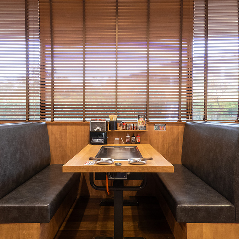 4名様から6名様までゆったりと座れるテーブル席を4つご用意しております。ご家族での団らんや、仲の良いご友人同士でのグループ利用に最適な広々としたBOXタイプのお席です◎