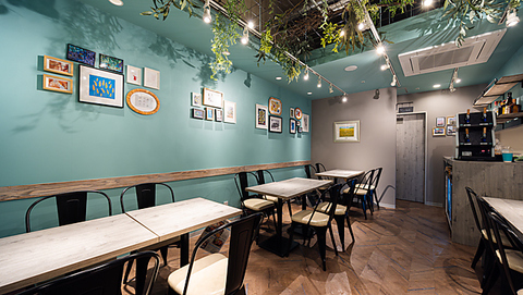 天井は吹抜けからフェイクグリーンが飾られ、爽やかでカジュアル、リラックス感のある雰囲気でお過ごしいただけます。