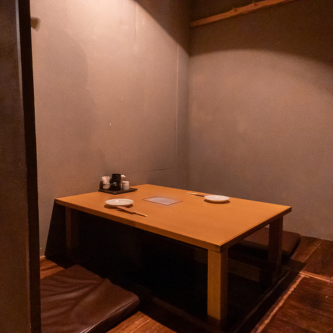 靴を脱いでリラックスして落ち着ける掘りごたつ個室をご用意しています。個室のある2階は隠れ家的雰囲気で部屋のサイズ感もちょうどいいとご好評いただいています。ご友人、ご家族との癒しの時間をごゆっくりお過ごしください。
