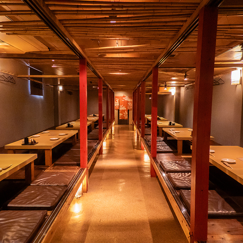 1階35~64名様まで。2階最大90名様まで貸切対応しております。和の趣きを感じる、広々店内でごゆっくり宴会をお楽しみくださいませ。