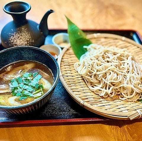 季節に合わせて蕎麦粉の産地を変えて、店内で打つ日本蕎麦をご提供しております。冷水できゅっと締めることでコシが強く、蕎麦粉の香りが強いのが特徴です。ざるそば880円(税込)、鴨南蛮蕎麦1000円(税込)、米豚 越王を使用した肉蕎麦1000円(税込)、鴨つけ蕎麦1050円(税込)とリーズナブルにご提供いたします。宴会の〆にも◎