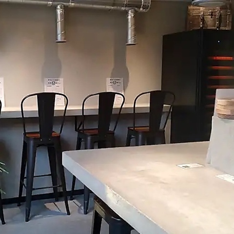 【1階・カウンター席】お一人様やカップルでのご利用に最適な、落ち着いた雰囲気のカウンター席をご用意しております。目の前で調理のライブ感を感じながら、スタッフとの会話も楽しめる特等席。お仕事帰りのサク飲みや、フラッと立ち寄りたい時にもお気軽にご利用いただけるアットホームな空間です。