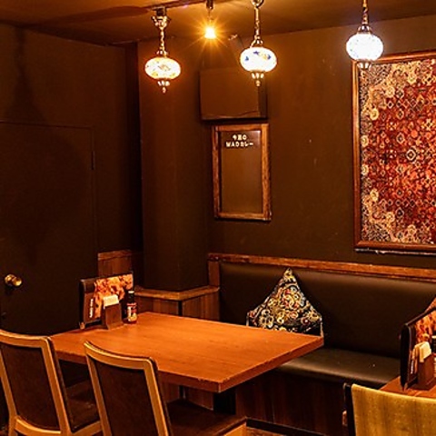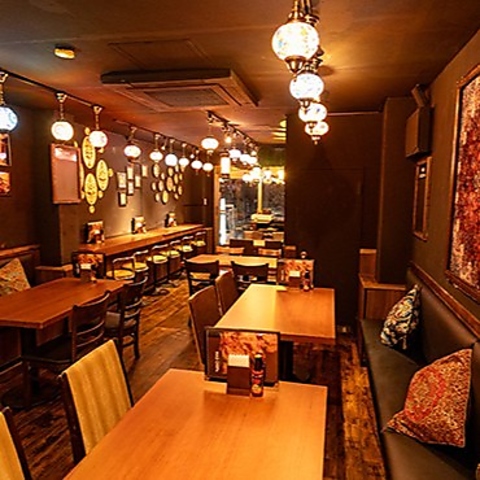 異国情緒あふれる店内。キッチンからスパイス香る店内で、お酒も会話も進むこと間違いなし。30~40名様で、着席での貸切利用も可能です。(※最低保証料金を設けさせていただく場合があります。)