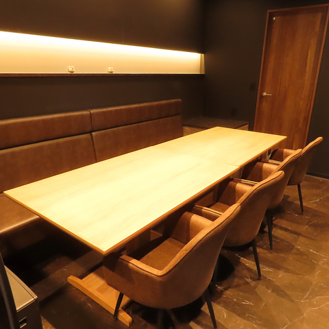 【大切なご接待に最適な個室】周囲の喧騒を離れた、静謐な完全プライベート空間をご用意。洗練された和の趣を感じさせるしつらえは、ビジネスでの大切なご接待や特別な日のご会食にふさわしい上質な空間です。至高のコース料理と厳選銘酒で、大切なゲストを真心を込めておもてなしいたします。