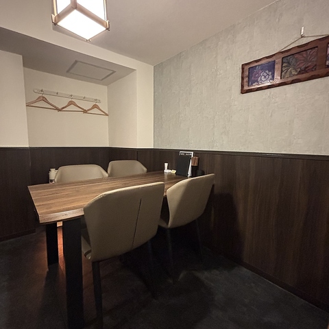 カウンター席に加え、お仕事帰りやご家族でも利用しやすいテーブル席を2卓ご用意。プライベート感ある空間でごゆっくりお寛ぎください。