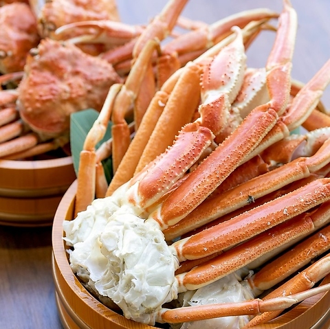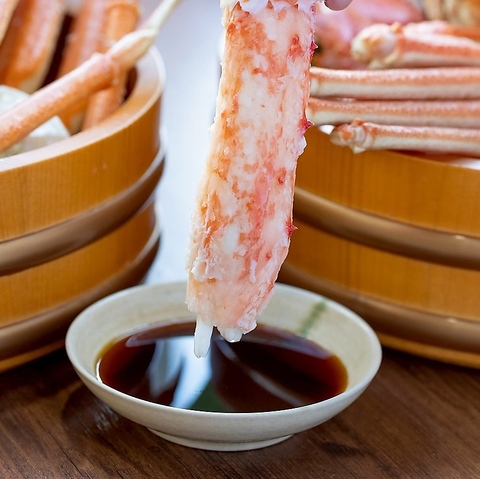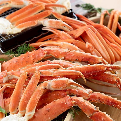 なんば駅から徒歩約2分。本ズワイ蟹・紅ズワイ蟹・たらば蟹まで楽しめる食べ放題コースが充実!