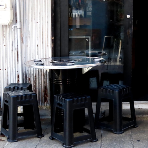 【テラス席】開放感たっぷりのテラス席。丸テーブルを囲み、夜風を感じながら仲間とワイワイ賑やかに楽しめます。