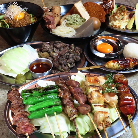 当店では4500円のコースを2種類ご用意しております。職人が丁寧に焼き上げる串焼きを存分に楽しめる「串三昧コース」は少人数からの集まりに最適。また、25名様から店舗を独占できる「貸切専用コース」は大人数でのご宴会にぴったりです!シーンに合わせて、こだわりの逸品料理を心ゆくまでご堪能ください◎