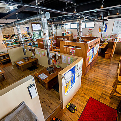足を伸ばして寛げるお座敷席は、小さなお子様連れのご家族や、宴会にも非常に適した空間です。開放感のある造りとなっており、親戚同士の集まりや地元の会合などでも安心してご利用いただけます☆和やかな雰囲気の中で、まるで自宅にいるような感覚でゆったりと焼肉を味わう贅沢をご提供します。