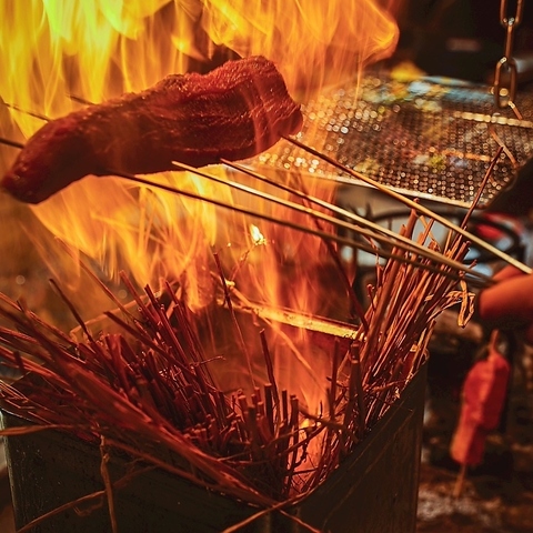 高知県から取り寄せた生鰹を店内で捌き鮮度抜群の鰹を香り豊かな藁焼きに。カウンター越しにお焼する藁焼きは迫力満点◎お酒との相性も抜群!※季節により藁焼きの内容は変更になる場合がございます。