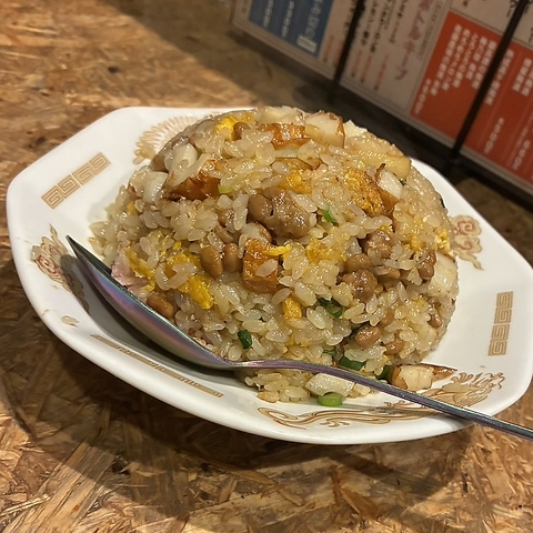 当店のメニューの中でも特に豊富なラインナップを誇るのが納豆を使った創作料理の数々です!その中でもニンニクの豊かな香りが食欲をそそる納豆ガーリックチャーハンは、食べ応えがありお腹もしっかり満たされます。パンチの効いた味わいは一度食べるとやみつきになること間違いありません。最後の一品に頼むのも最適です。