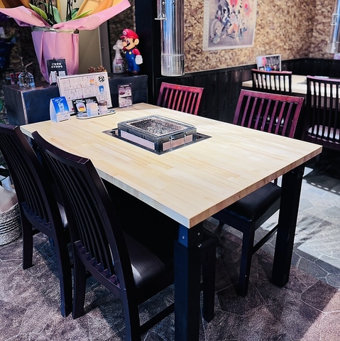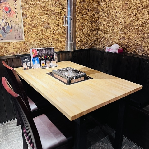 最大6名様まで対応可能な広々としたテーブル席は、2卓完備しております。小規模な宴会や女子会、友人同士の集まりなど、様々なシーンで活躍するお席です。明るく活気のある店内で、美味しいお肉とお酒を囲めば会話も弾むこと間違いありません。幅広い客層に対応した心地よい空間で、特別な時間を提供いたします。