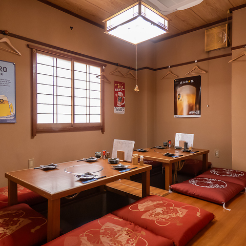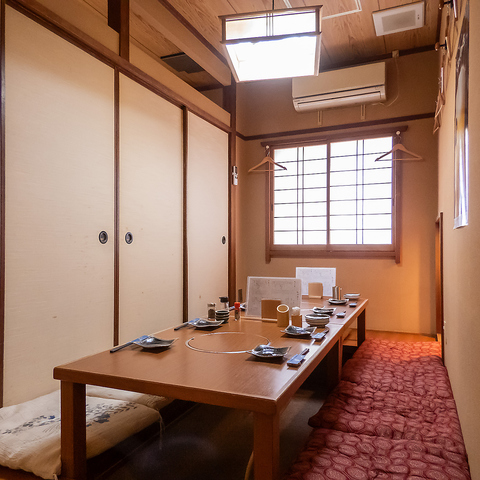 中人数の集まりに最適な掘りごたつ個室は、最大10名様までご利用いただけます。足元を気にせずリラックスできる空間は、気心の知れた友人との飲み会や親族での会食にもぴったりです。和の雰囲気が感じられる落ち着きのある内装で、穏やかな時間を演出します。周囲を気にすることなく、プライベートな宴をお楽しみください。