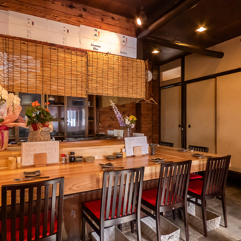周囲の視線を遮る掘りごたつ式の個室は、友人との飲み会や女子会、接待、大切な方との会食にも最適です。足を伸ばして寛げる快適な空間で、穏やかな時間の流れをご堪能いただけます。和の情緒を感じさせるしつらえは、大人の隠れ家のような居心地の良さを提供します。静かな環境の中で、心ゆくまで料理と会話に集中できる環境となっております。