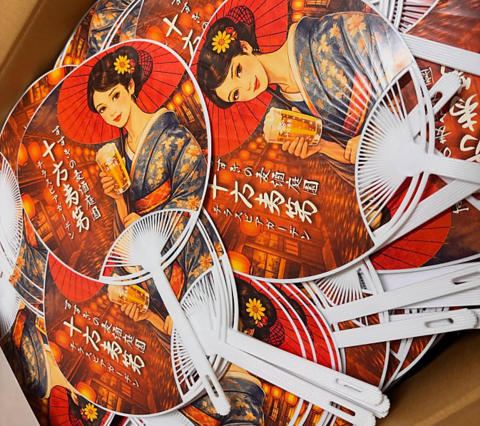 日本の夏を感じる和モダンなビアガーデンでは暖簾や行燈と着物を着たスタッフが、ビアガーデンを彩ります