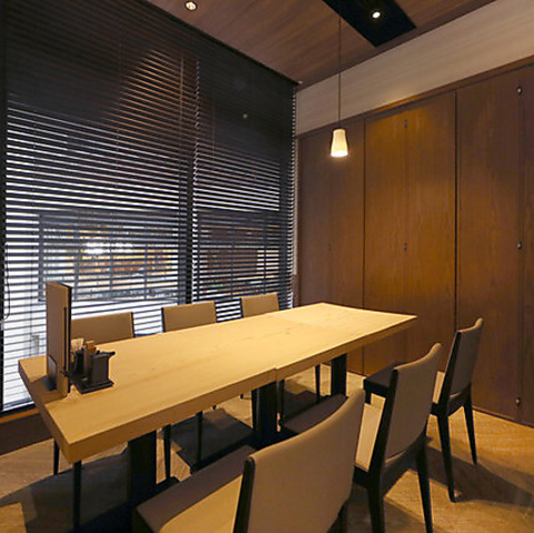 接待や顔合わせにおすすめな個室席。4名席個室と6名席個室があり、結合すると10名席まで可能です。