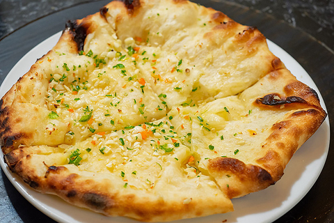 刻んだガーリックをたっぷり散りばめた香ばしいナン