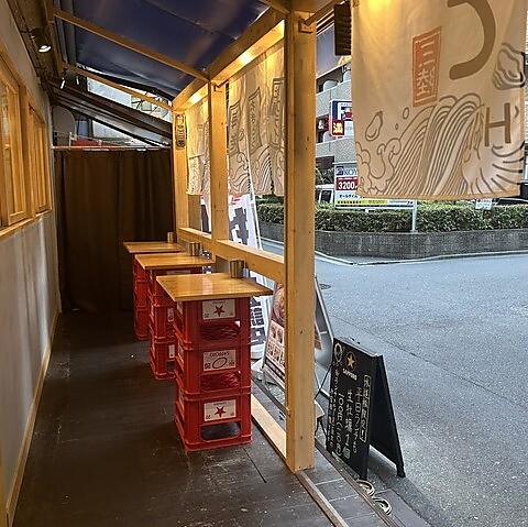 当店では開放的なテラス席もご用意しており、立ち飲みスタイルで気軽にお過ごしいただけます。こちらは喫煙も可能ですので、外の空気を感じながらリフレッシュしたい際にもぴったりなスペースです。18時から20時の混雑する時間帯のご予約はお電話にて承っております。皆様のご来店を心よりお待ちしております