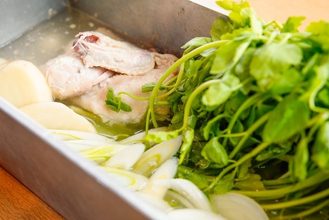 ※2~3人前(トッピング各種:チーズ、乾麺、うどん、トック、ミナリ)鶏肉の優しい出汁にセリのさわやかな香りが加わった近年注目されているヘルシーで贅沢な組み合わせ。